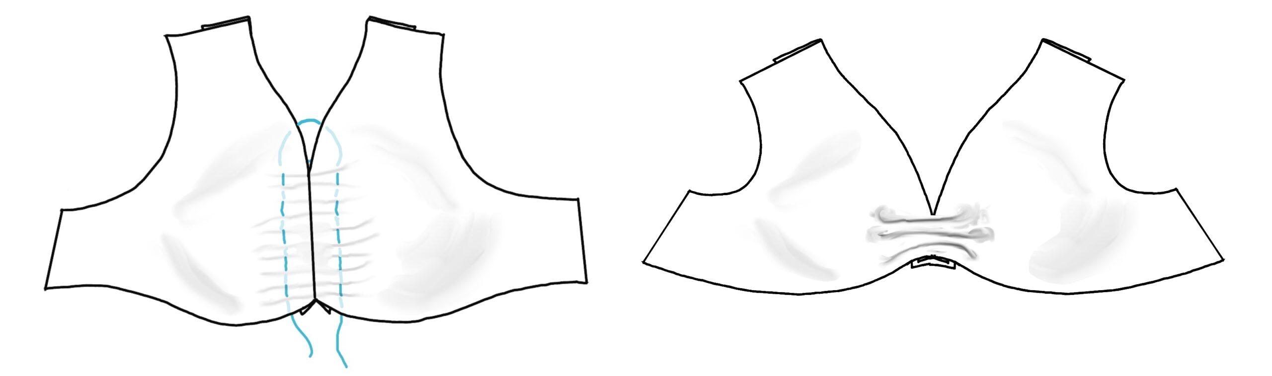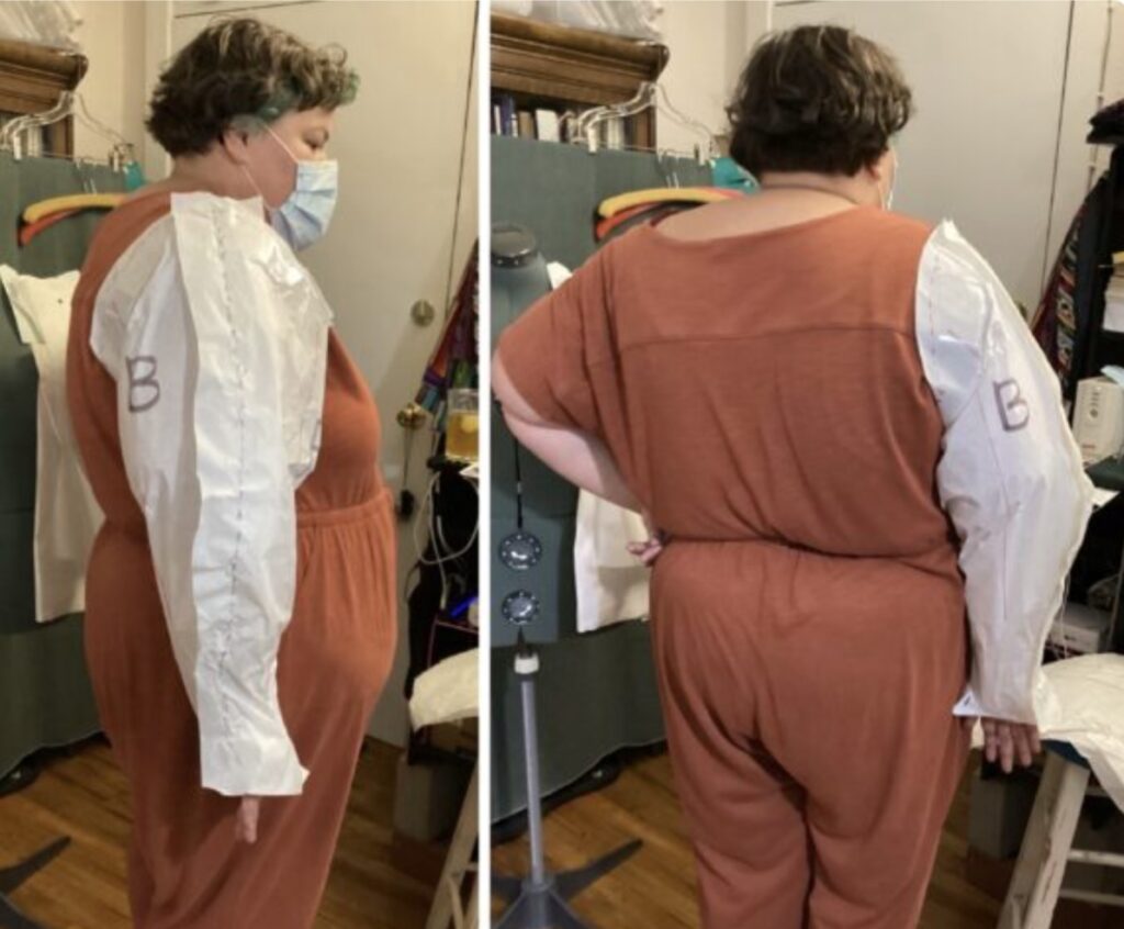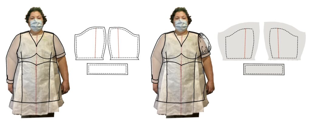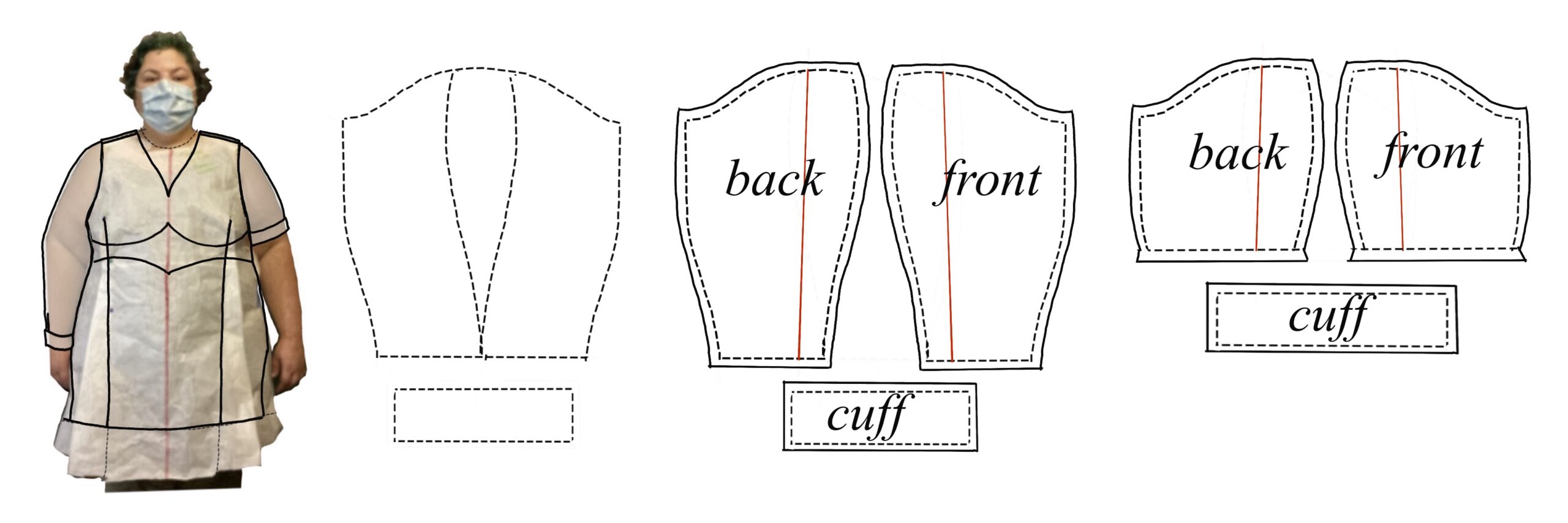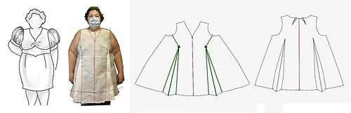 Here are the front and back from the rough master. The green lines are for dart manipulation in the next step.