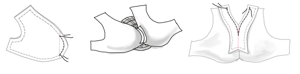 We will further manipulate the darts to soft gathers at the center front when we get to the upper bodice. Easier to do in two steps.