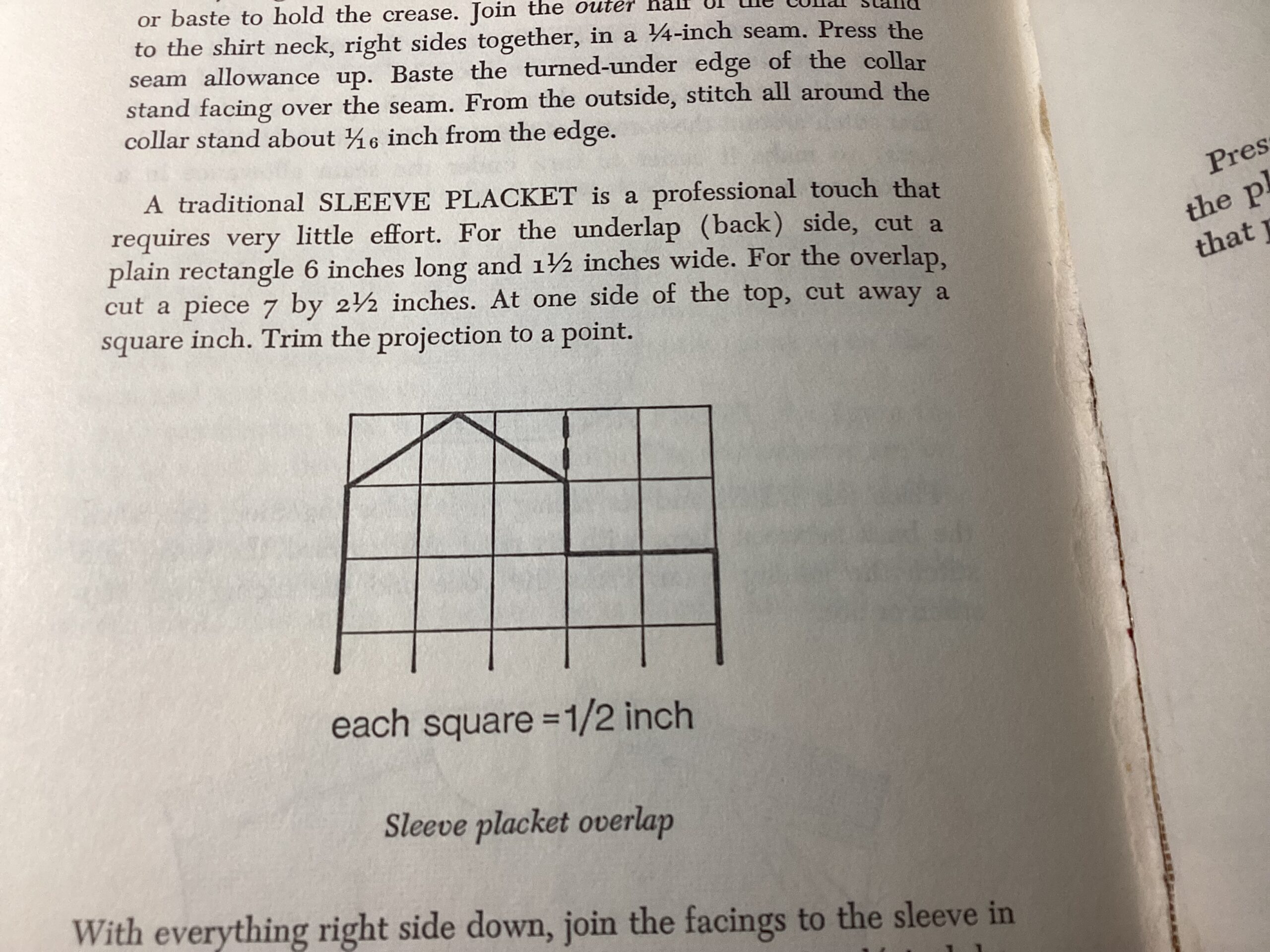 Placket: underlap. 6 “x1.5” 15.24 x 3.8 cm