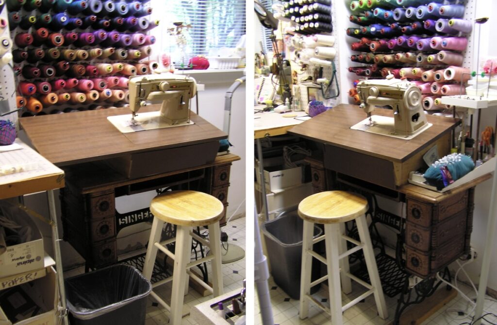 - The cabinet – the wooden bit; its top is the bed, the sewing surface