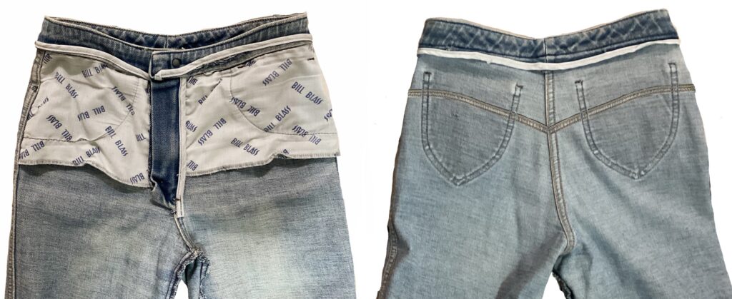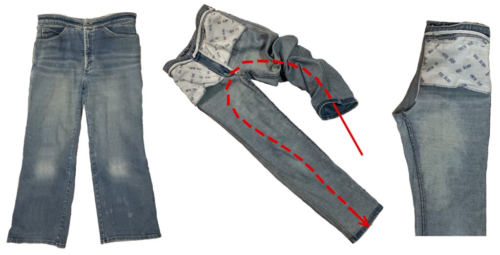 This puts the seams to the outside and makes the crotch fork accessible. That’s the triangle that sticks out of the back but can refer to the front as well.
