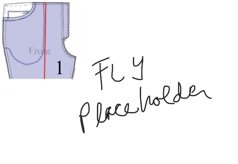 1. Note that the waistband is NOT perpendicular to the grain. If you want your pants to fit and your waistline slants, so must your waistband. We’ll reconcile any difference in angle between the front and back when we do the back.