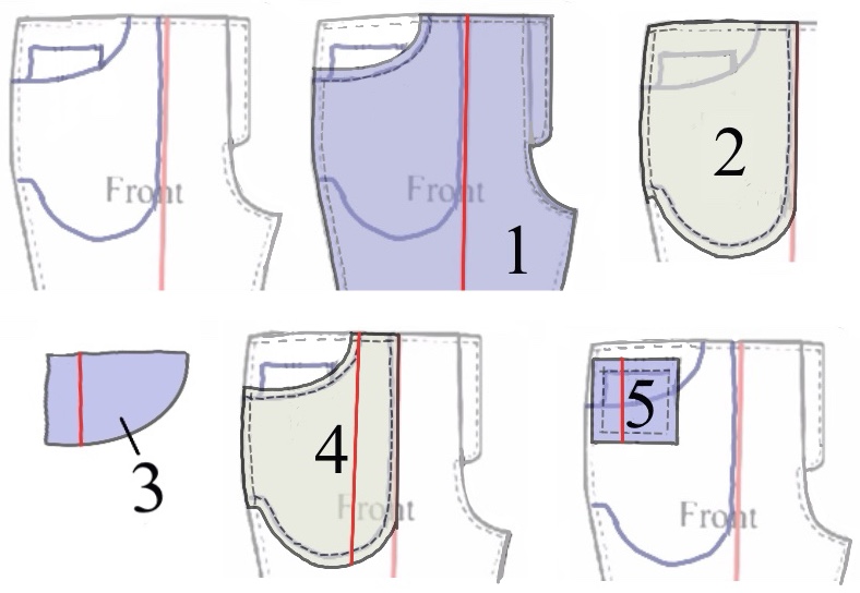 3. Denim pocket facing, cut 2