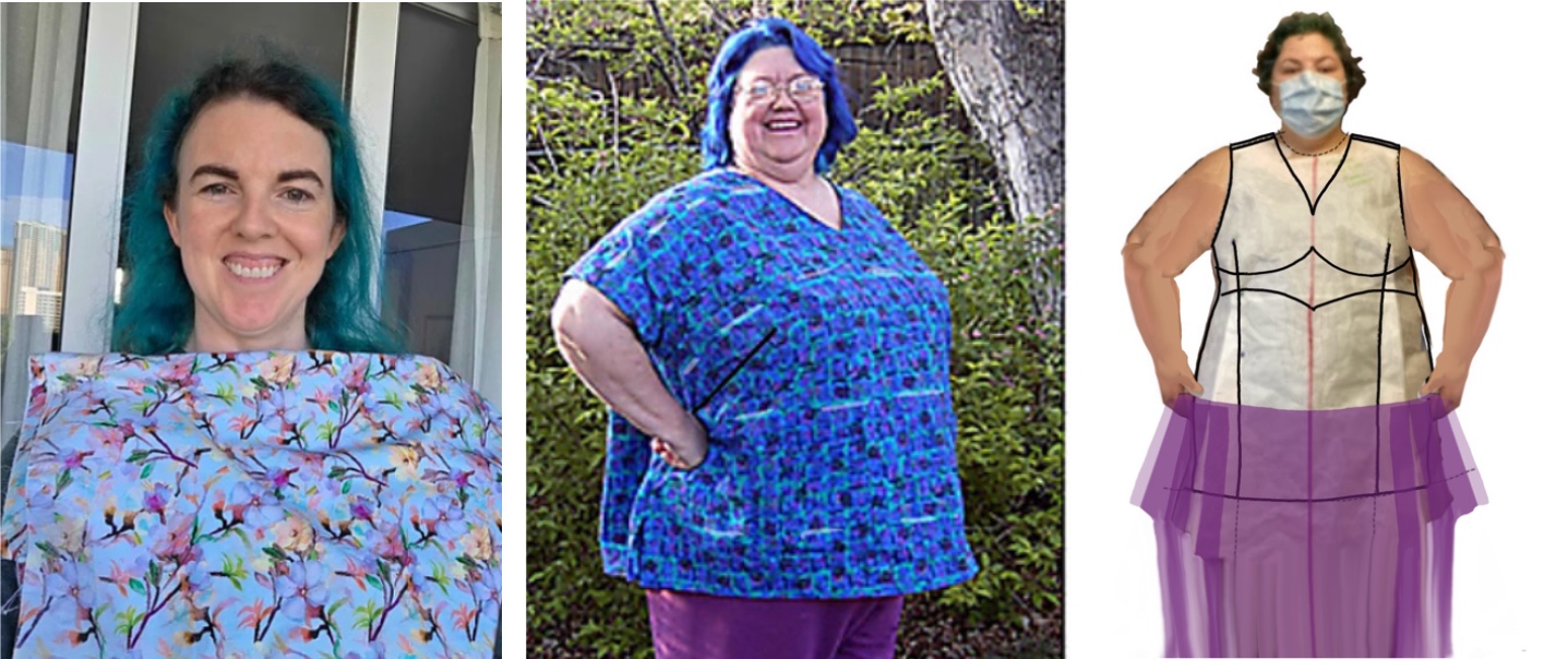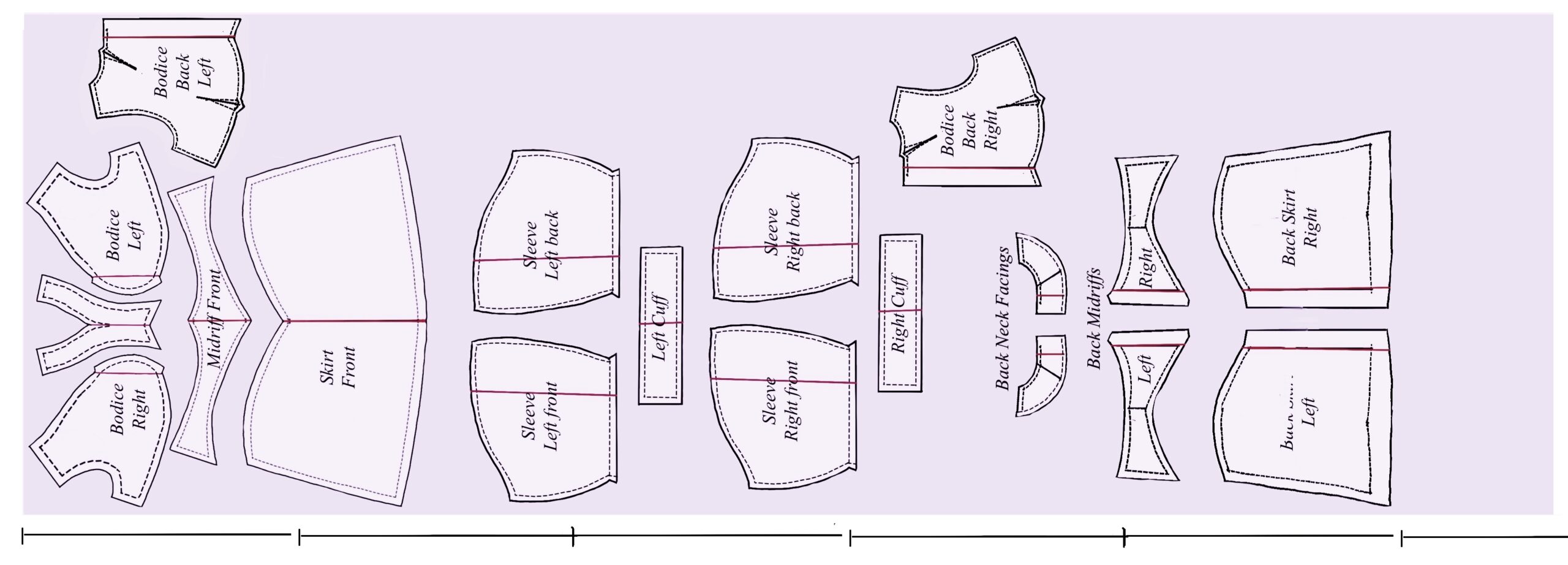 Larger bodies are used for most examples but these apply universally. Pattern pieces for fuller figures can be wider than the available fabric. Larger pieces can be narrowed with dart manipulation (see below) or split, such as in this princess pattern.