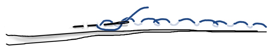 - Take a couple running stitches (whatever will fit on your needle) and pull up the thread. Start the next sequence a little behind where the last stitch came out. This backstitch coupled with the faster ones is quite secure.