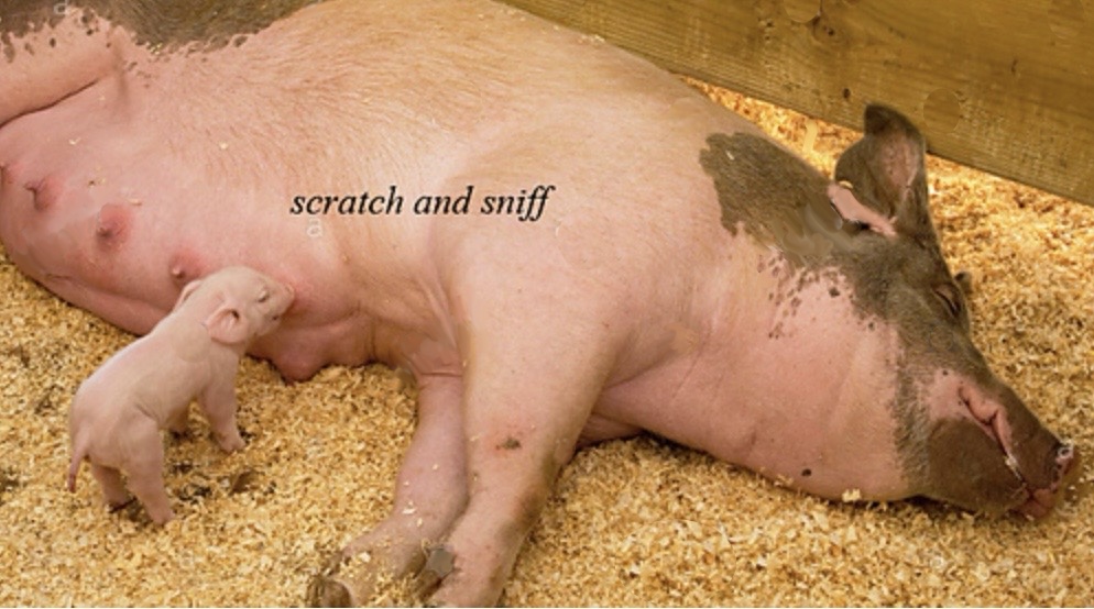 I am deeply suspicious of what this piglet has done with its littermates.