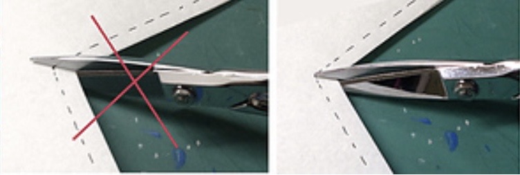 The marks can be doubled or tripled as you work around from back to front – a sleeve’s armscye usually has a single at the front and a double at the back. The industry transfers these as short nips into the seam allowance. Couture runs short crosswise lines of basting. I have seen students painstakingly cut little tepees standing up from the cutting line as that’s what was printed on the pattern. No, that was to make the marks more visible.