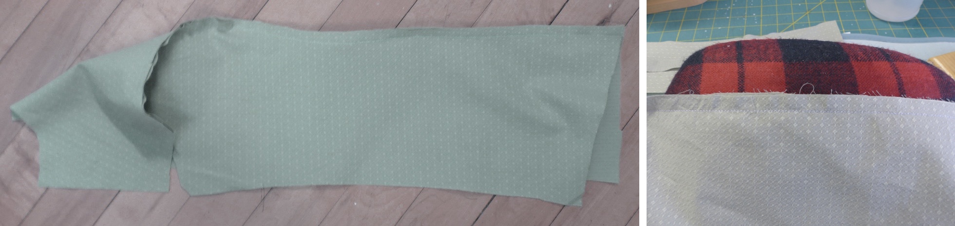 Continue to the bottom, where the pieces should exactly match. Press the seam as sewn over a ham/folded towel.