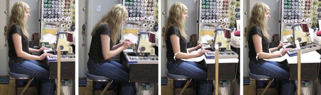 During the early days of the pandemic before commercial masks became available, for most of the day I was sewing seated at my treadle or standing at my electric (I had a ruffler set up to pleat the bottoms of the masks). I got tired, but my body didn’t hurt.