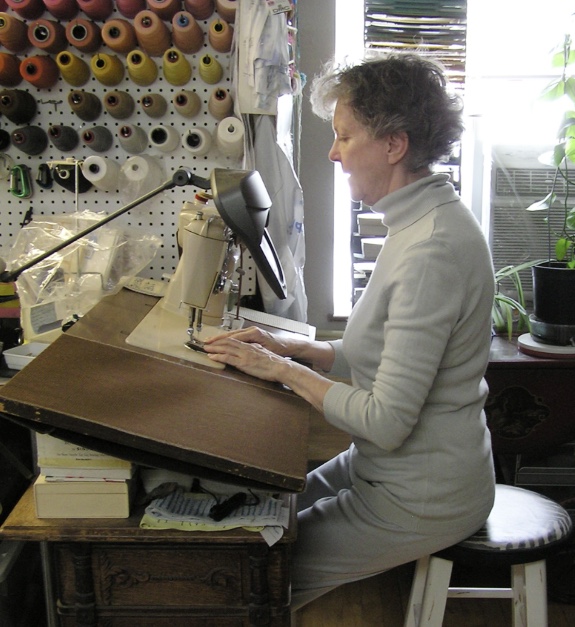 This friend is about 6” taller than I. The clumsily-modified old shots of her are at my serger, but the basics are the same.