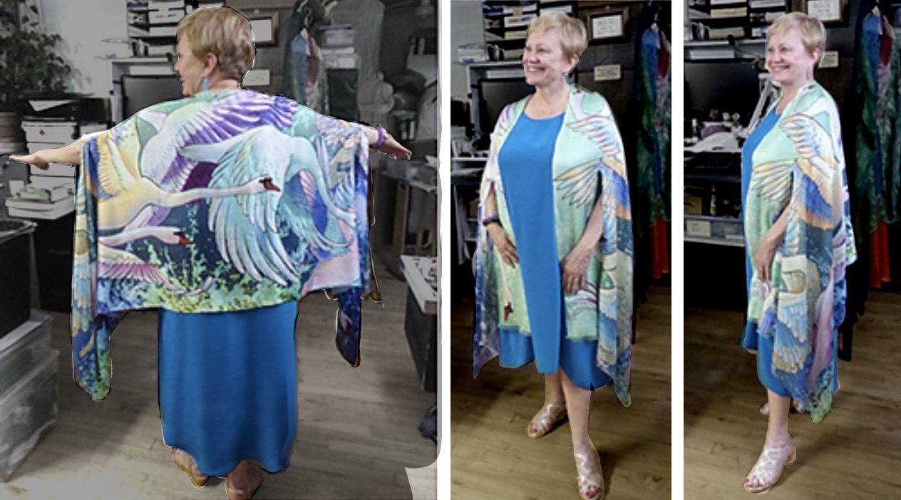 Silk chiffon over silk doupioni with hand embroidery; facing stabilized with crinoline net.