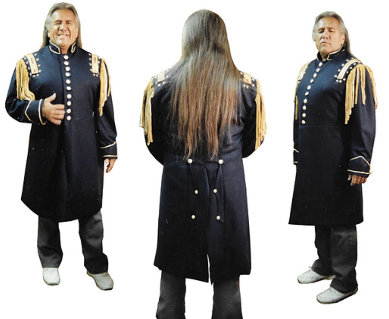 Years back, this guy came to me to have “pony soldier coats” made. He was traveling to Germany to lecture to interested groups, and his first not-very-specific coat was all but torn off of him by his fans. He decided it was worth having them done professionally.