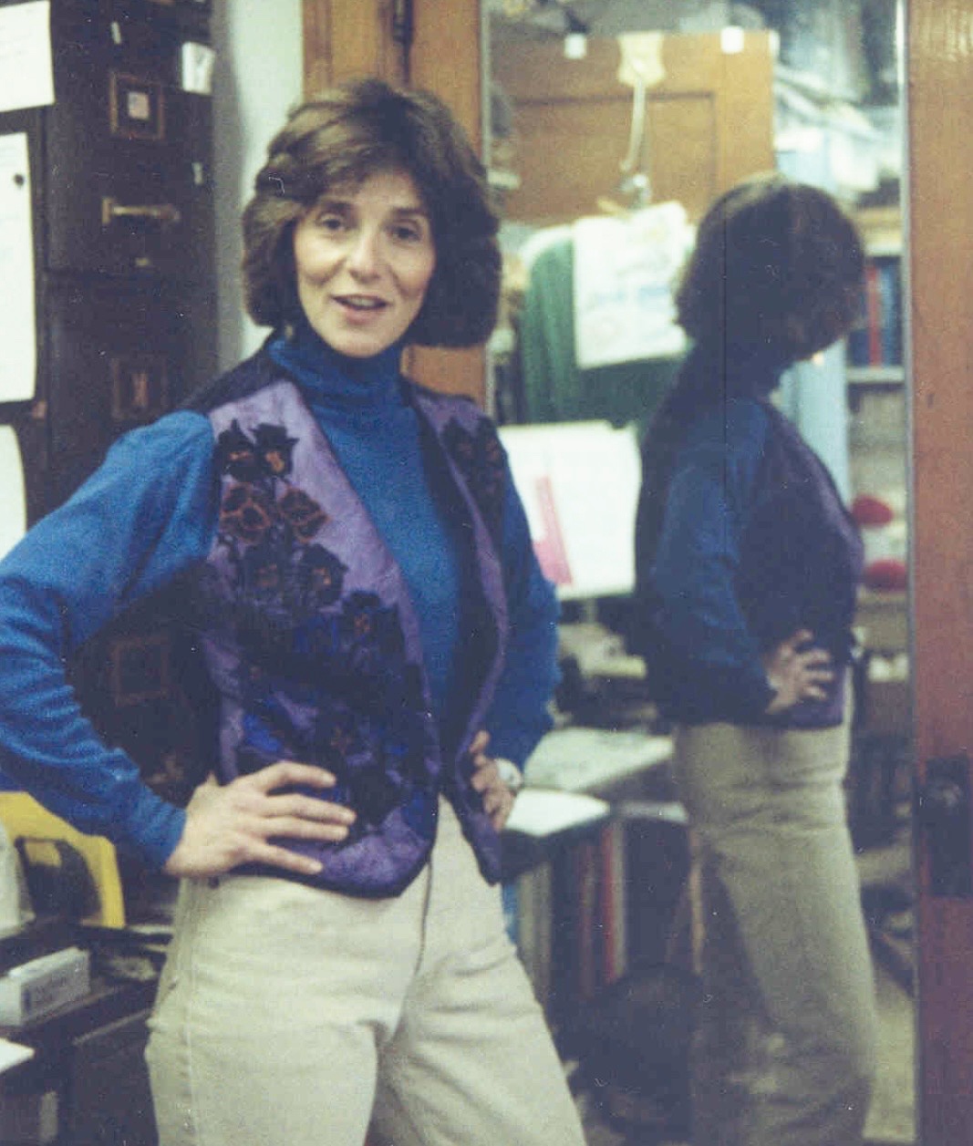 Custom vest with floral appliqué.